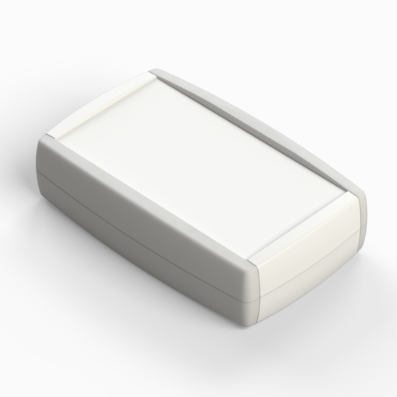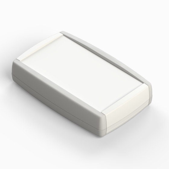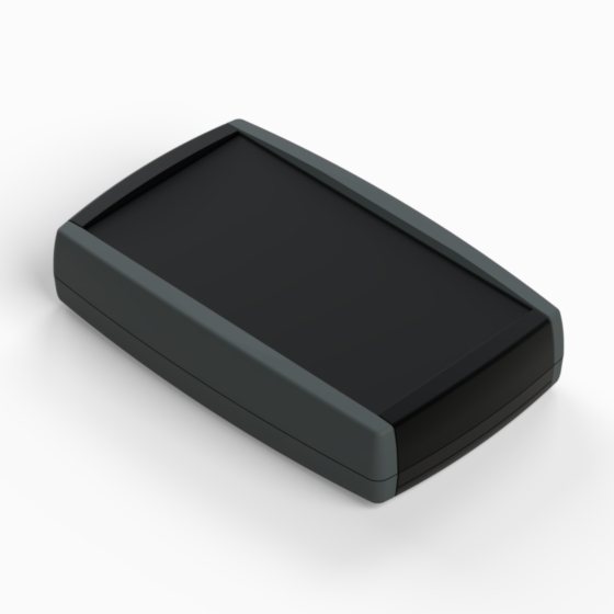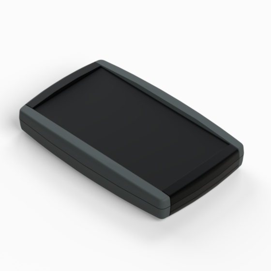 ABS enclosures with new soft-touch contoured shape. By utilising multi-shot moulding technique, Teknet features an ergonomic design of elastomer grips (TPU) on the side of the case. The models with “-B” have a battery compartment for two 1.5V mignon-cells (AA) or one 9V flat battery (PP3). The models with “-B2” have a battery compartment for four mignon cells 1,5V (AA) or two flat batteries 9V (PP3). Matt surface finish. Closing by four screws. Upon request aluminium panel “APTB”, Keypad membrane “M” or “MW” (with transparent display area).