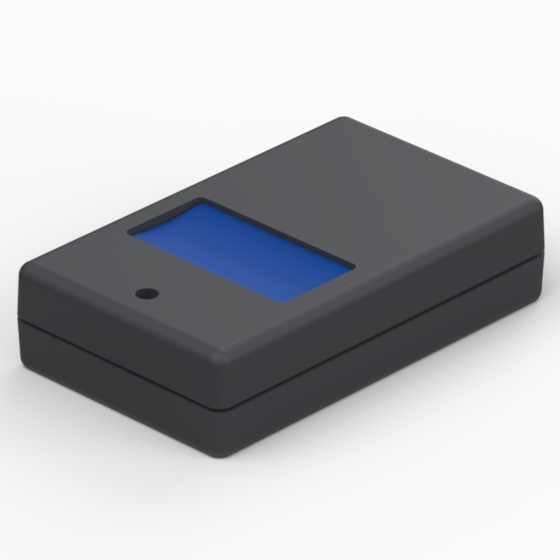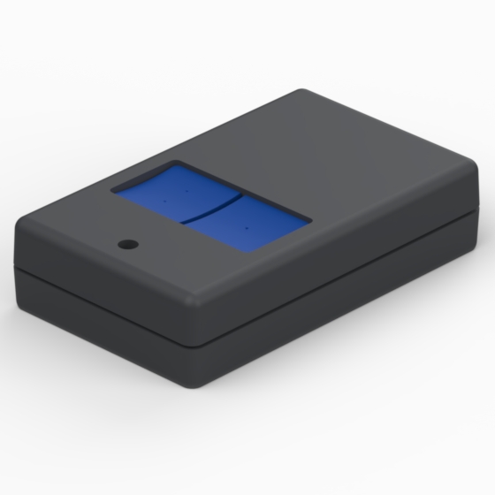 ABS enclosures with rounded corners with one or two push-button configurations. The base has a integral PCB mounting studs. The enclosure is supplied with two metal contacts for 12V battery (Mod. AB12). Matt surface finish. Closing by one screw.