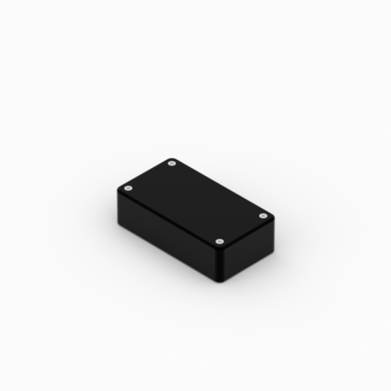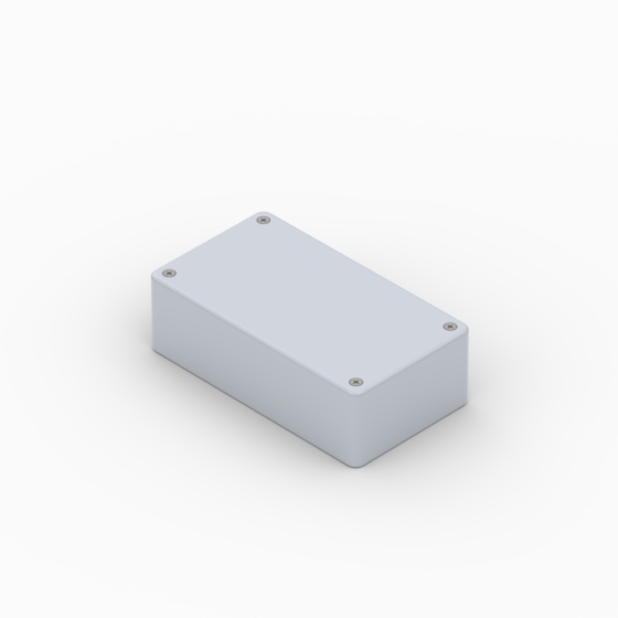ABS enclosures with rounded corners. Glossy surface finish. The base walls have integral PCB guides.Closing by four screws.